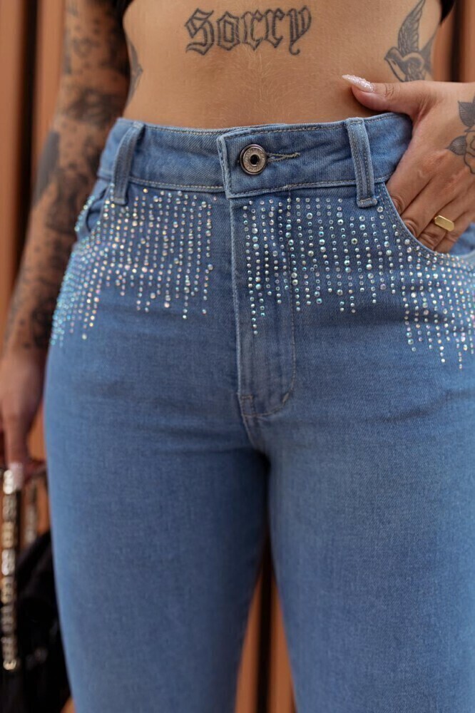 Imagine-se usando essa calça em diversas ocasiões: para um look descontraído no dia a dia ou em uma saída à noite. O design mom oferece conforto e estilo, enquanto os strass adicionam um brilho irresistível.